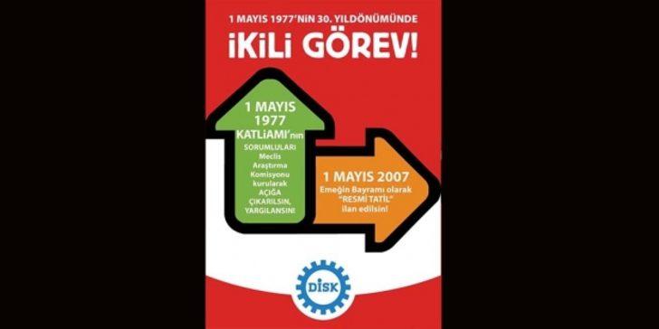 2007 yılında 1 Mayıs'ı tekrar Taksim'de kutlayarak aynı zamanda 1977'de olan olayları anmak isteyen grupları polis silah, biber gazı, gaz bombası kullanarak durdurmaya çalıştı. 100'den fazla kişi yaralandı.Valiliğe göre 580, diğer kaynaklara göre 700'e yakın gözaltı gerçekleşti. İbrahim Sevindik adındaki bir vatandaş hayatını kaybetti.